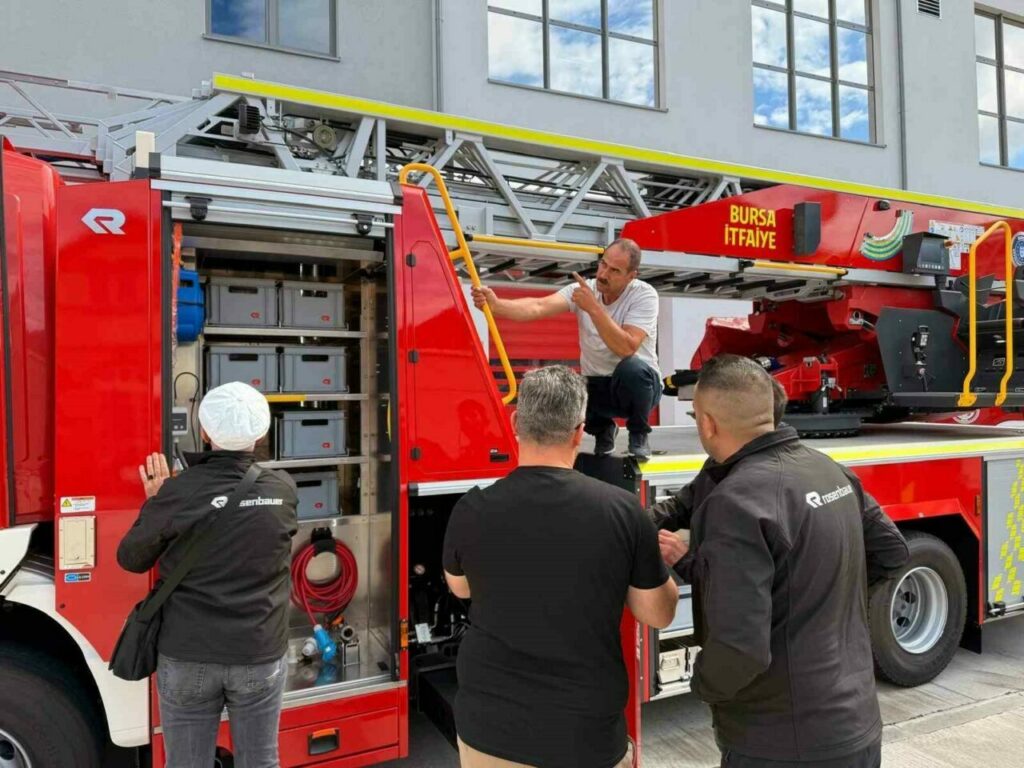 Bursa Büyükşehir Belediyesi, halkın can ve mal güvenliğini doğrudan ilgilendiren en önemli hizmetlerden biri olan itfaiye teşkilatının gücüne güç katıyor. Bursa’yı geleceğe taşıyacak projeleri bilimsel veriler ışığında ve kararlı adımlarla hayata geçiren Büyükşehir Belediyesi, halkın huzur ve güvenliğinin sağlanması noktasında gerekli yatırımları da yapıyor. En önemli belediyecilik hizmetlerinden olan itfaiye teşkilatını ekip ve ekipman yönünden sürekli güçlendiren Büyükşehir Belediyesi, son olarak 3 adet 32 metre ve 1 adet 42 metre olmak üzere toplam 4 adet tam otomatik hidrolik mafsallı merdivenli itfaiye aracını da itfaiye filosuna katmaya hazırlanıyor. İtfaiye Dairesi Başkanı Canalp Berkdemir ve teknik personelden oluşan bir ekip, Almanya’nın Karlshure kentine giderek araçların ön kabul işlemlerini tamamladı. Temsili anahtar teslimleri yapılan araçlar, Bursa’ya doğru yola çıkarıldı. Bursa Büyükşehir Belediye Başkanı Mustafa Bozbey, son dönemde Türkiye genelinde ve Bursa’da etkili olan yangınların itfaiye teşkilatının ne kadar önemli olduğunu bir kez daha gösterdiğini söyledi. İtfaiye teşkilatını ekip ve ekipman yönünden sürekli güçlendirdiklerini belirten Başkan Mustafa Bozbey, halen 694 personel 144 araç ile 31 istasyonda itfaiye hizmeti verildiğini ifade etti. Sıcak havaların yanında elektrikten ve başka unsurlardan kaynaklı yangınların artığını dile getiren Başkan Bozbey, “Yangın olmaması en büyük dileğimiz. Ama artık 10-15 dakikada bir yangın ihbarı alıyoruz. Bu yüzden itfaiye teşkilatımızın araç ve insan bakımından güçlü olması önemli. Bu kapsamda 3 adet 32 metre ve 1 adet 42 metre olmak üzere toplam 4 adet tam otomatik hidrolik mafsallı merdivenli itfaiye aracını itfaiye filomuza katıyoruz. Bu araçlarımızla itfaiye teşkilatımız daha da güçlenmiş olacak” dedi.