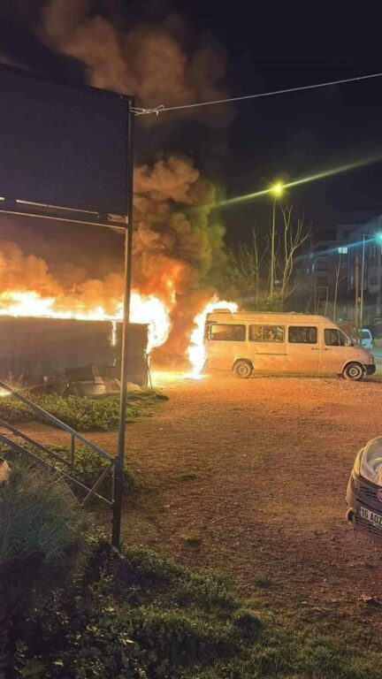 BURSA’NIN OSMANGAZİ İLÇESİNDE BİR BARAKADA ÇIKAN YANGIN, YANINDA BULUNAN MİNİBÜSE SIÇRADI. YANGIN İTFAİYE EKİPLERİNİN MÜDAHALESİYLE SÖNDÜRÜLDÜ.