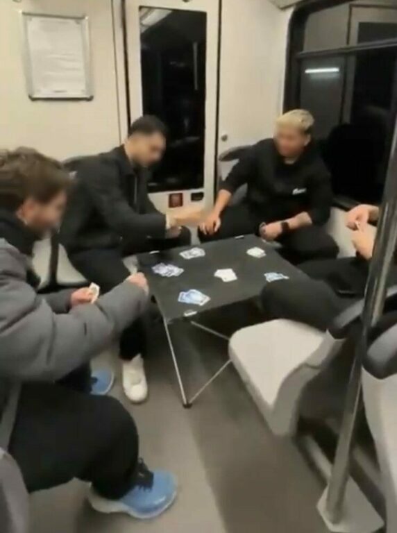 Bursa’da metro içerisinde masa kurup kağıt oyunu oynayan gençler, diğer yolcuların hayret dolu bakışlarına neden oldu. Yolculuk sırasında alanın ortasına oturdukları küçük masayı açan grup, kısa sürede kartlarını çıkararak oyuna başladı. O anları gören vatandaşlar hayret dolu bakışlarla izlerken, bazı yolcular cep telefonlarıyla ilginç anları kaydetti. Görüntüler sosyal medyada da dikkat çekti.