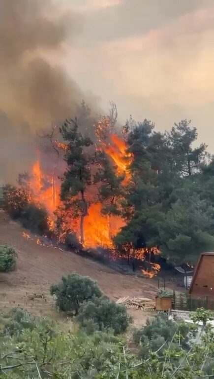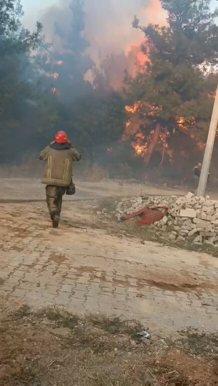 Rüzgarın etkisiyle büyüyen yangın geniş bir alana yayıldı.