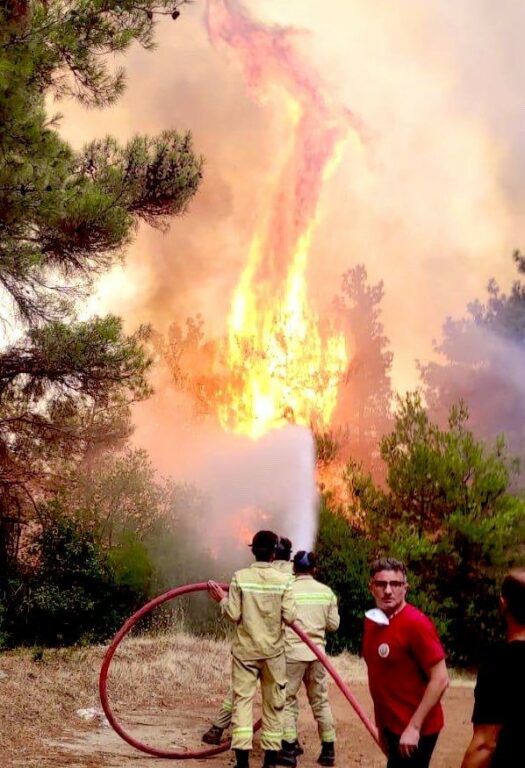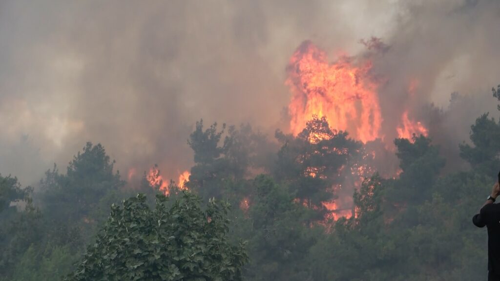 Ekipler yangını havadan ve karadan söndürmeye çalışıyor.