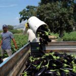 Bursa Orhangazi’de tarım sektörünün en önemli ürünlerinden olan patlıcan için hasat başladı. Orhangazi Kaymakamı Zafer Karamehmetoğlu, Tarım İl Müdürü İbrahim Acar ile birlikte Gemiç altında Samet Tüfekçioğlu’na ait Patlıcan tarlasında hasat törenine katıldı. Bu yıl Orhangazi ovasında 3 bin 200 dekar alanda patlıcan ekimi yapılırken, tahmini rekoltenin ise 12 bin 800 ton olması bekleniyor.