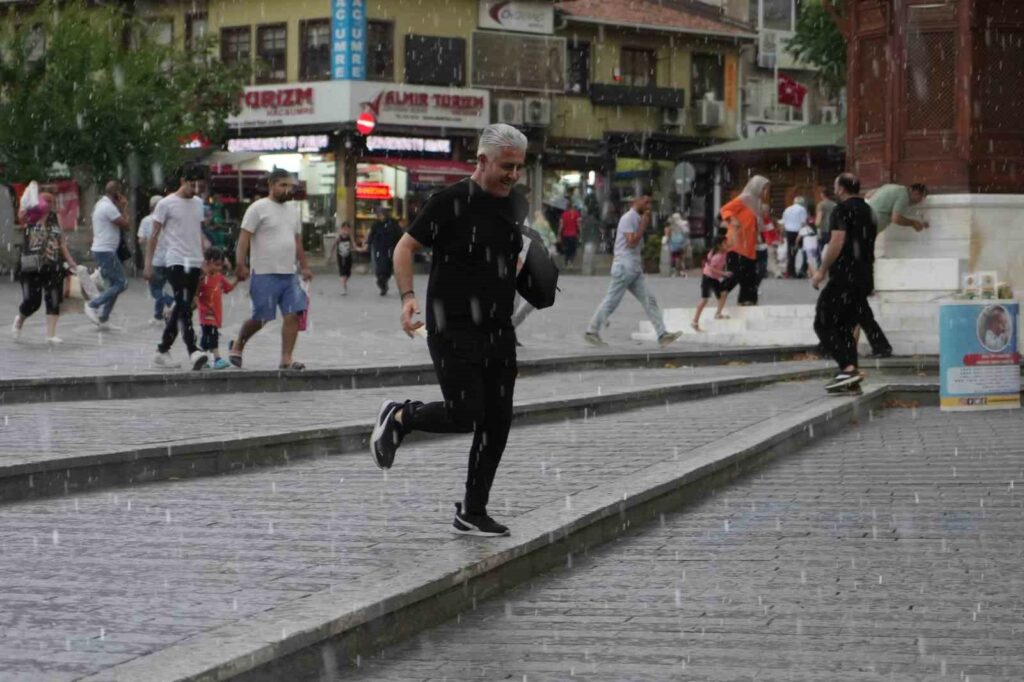 Şehir merkezinde kuvvetli sağanak yağış etkili oldu. Aniden bastıran yağışa hazırlıksız yakalanan vatandaşlar çareyi korunaklı alanlara sığınmakta buldu. Bazı vatandaşlar ise yağmura aldırış etmeden yürümeye devam etti. Araçlar, sağanak yağmur sebebiyle zaman zaman ilerlemekte güçlük çekti.