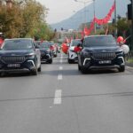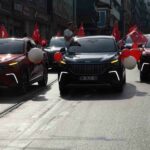 Bursa’da oluşturdukları gruptan haberleşen Togg T10X sahipleri, Cumhuriyet’in 100. yılında yerli ve milli otomobille şehir turu attı. Anadolu, Gemlik, Pamukkale ve Kula renk akıllı cihazlarını kırmızı ve beyaz balonlarla süsleyen sahipleri, kornalar eşliğinde Heykel, Altıparmak, Kükürtlü ve Bursa Büyükşehir Belediyesi Stadyumu turu attı. Stadyumun önünde Togg’larla hilal ve ay oluşturan araç sahipleri, ellerindeki bayraklarla Cumhuriyet’i kutladı.