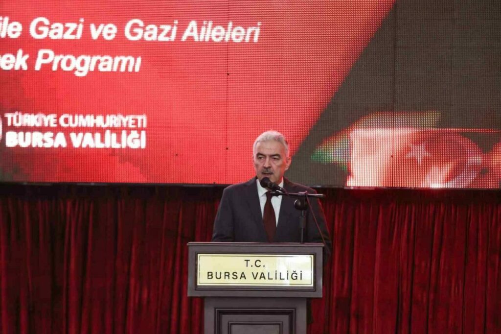 Programda konuşan Bursa Valisi Erol Ayyıldız, şehit ailelerine ve gazilere gösterdikleri metanet ve fedakârlık için şükranlarını sundu. Vali Ayyıldız, “Yüz yıl önce Çanakkale’de ve Kurtuluş Savaşı’nın evrelerinde, bağımsızlık sevdası ve vatan aşkıyla yoğrulmuş bir şuurla zalimin karşısına dikilen ecdadın torunları, aynı ruh ve inançla 15 Temmuz’da da yedi düvelin ve onun iş birlikçilerinin karşısına çıkmıştır” diye konuştu.