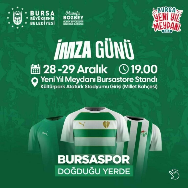 28-29 Aralık tarihlerinde Yeni Yıl Meydanı’nı ziyaret edecek olan Bursaspor Teknik Direktörü Pablo Martin Batalla ile futbolcular Ahmet İlhan Özek, Muhammet Demir, İlhan Depe, Yiğit Ali Bayrak ve Musa Çağıran, Bursastore standında taraftarlarla bir araya gelecek. Futbolcularla tanışma ve forma imzalatma imkanı bulacak olan taraftarlar, Bursaspor coşkusunu Yeni Yıl Meydanı’nda hep birlikte yaşayacak.