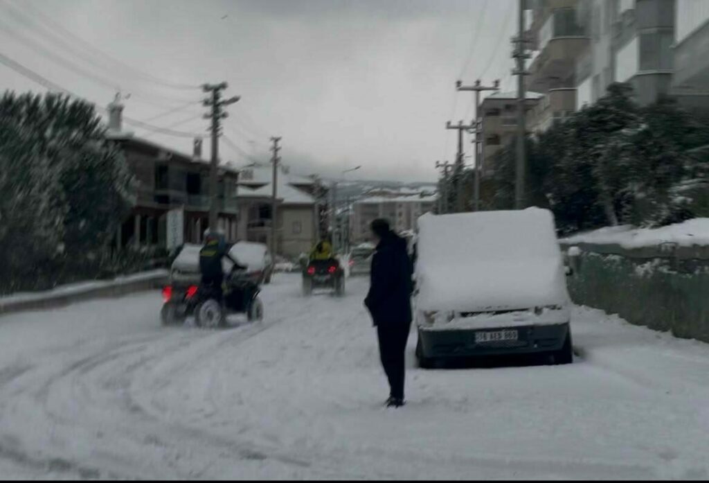 Bursa yeni yılın ilk günü beyazlara büründü…İşe ATV araçları ile gittiler