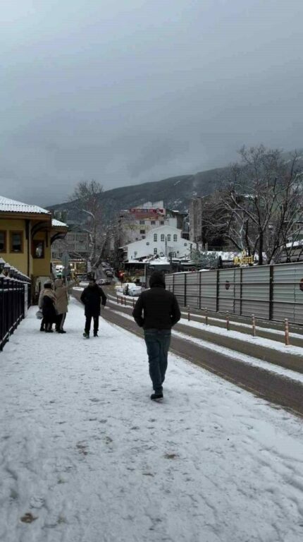 Bursa’da yeni yılın ilk gününde etkili olan kar yağışı, şehir merkezini ve Mudanya’yı beyaz örtüyle kapladı. Sabah saatlerinde başlayan kar yağışıyla birlikte kentte kartpostallık görüntüler oluşurken, renkli anlar da kameralara yansıdı. Bazı vatandaşlar yoğun kar olunca işe ATV araçlarıyla gittiler. Çocuklar ise uyanır uyanmaz sokağa çıkıp poşetlerle kaydılar.