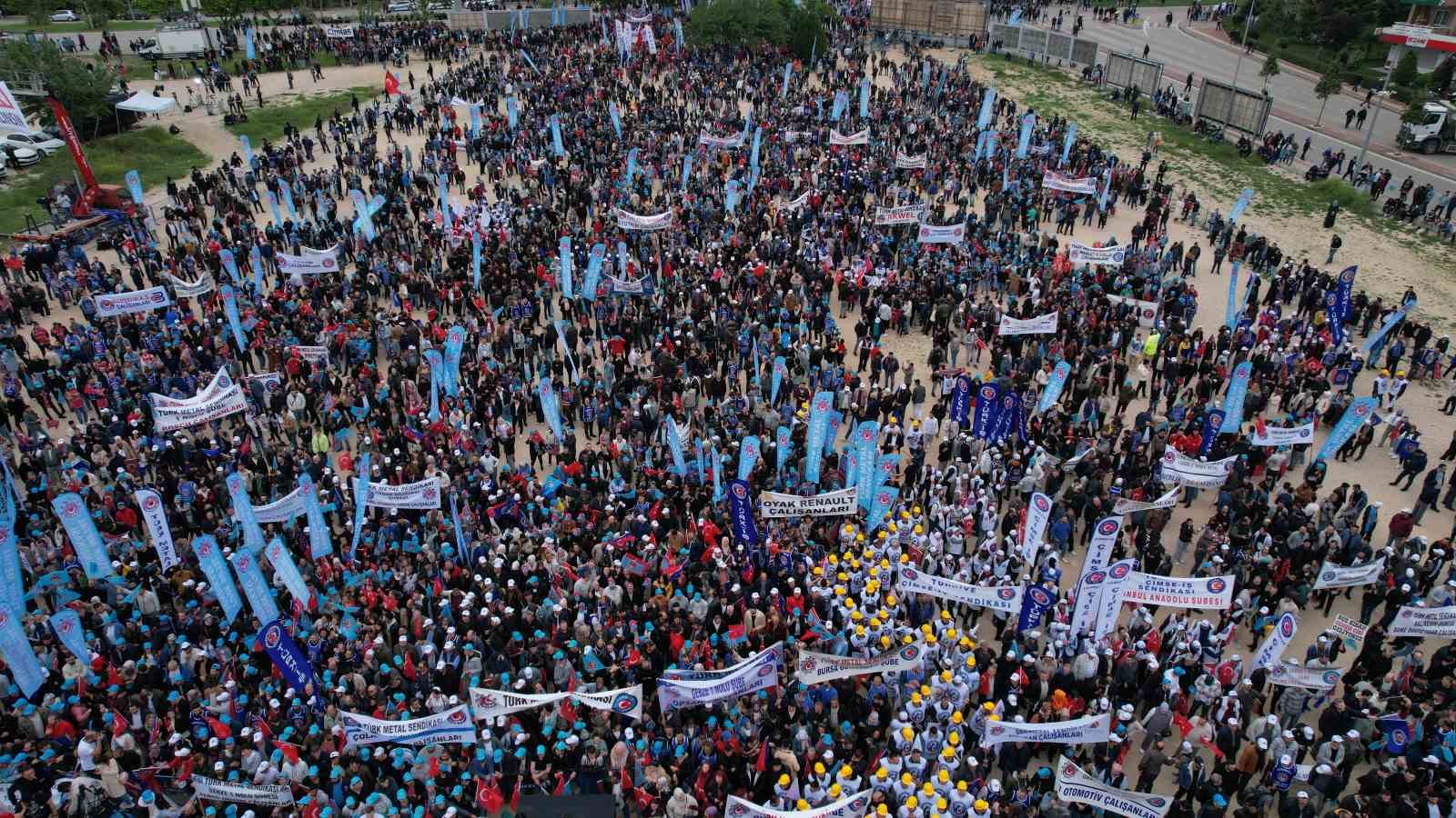 1 Mayıs Emek ve Dayanışma Günü’nde binlerce işçi Fatih Sultan Mehmet Bulvarı’nda toplandı. Polis tarafından tek tek aranan işçiler, bayraklarla metrelerce uzunlukta kortejler oluşturdu. 1 Mayıs’ı işçiler davul ve zurnalarla halay çekerek kutladı. Toplanmanın ardından binlerce işçi, yürüyerek hastane alanındaki etkinliğin yapılacağı alanda toplandı. Bursa Büyükşehir Belediye Başkanı Mustafa Bozbey ve çeşitli partilerin milletvekilleri alana gelerek işçilerin bayramını kutladı. Coşkulu kalabalık havadan dron ile görüntülendi.