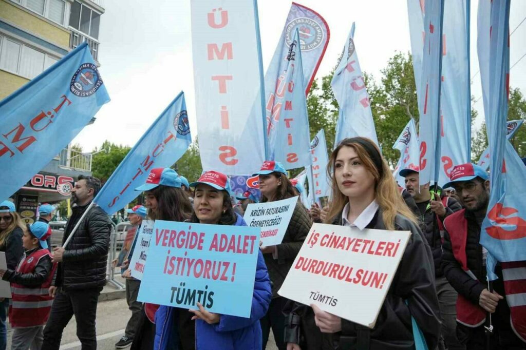 1 Mayıs Emek ve Dayanışma Günü’nde eski stadyum önünde toplanan binlerce işçi, öğrenci, sendika üyelerı, sivil toplum kuruluşu ve siyasi parti temsilcileri, ellerindeki pankartlarla sloganlar atarak Darmstad Caddesi’nden Kent Meydanı’na yürüyüşe geçti. 1 Mayıs’ın kutlanacağı alanda polis geniş güvenlik önlemleri alarak, pankart ve dövizleri tek tek kontrol etti. Kanunlara aykırı olan pankartlar alana alınmadı. Alanda işçiler halaylar çekerek 1 Mayıs’ı kutladı.