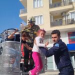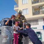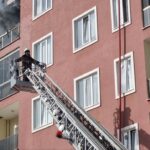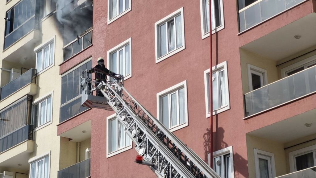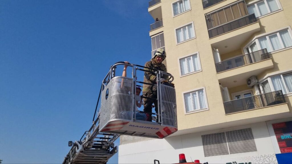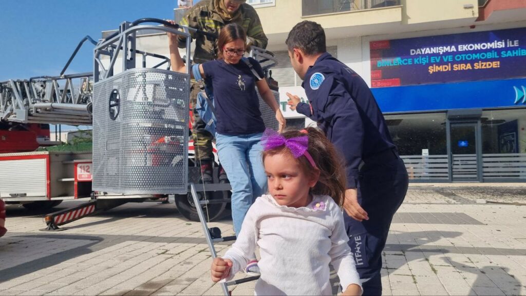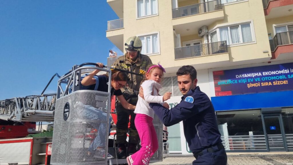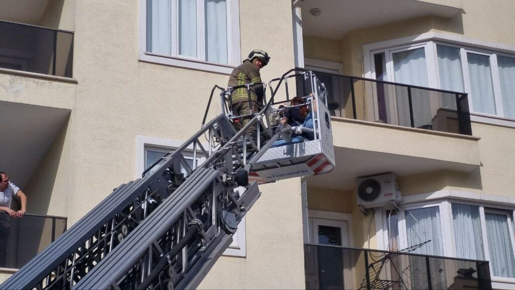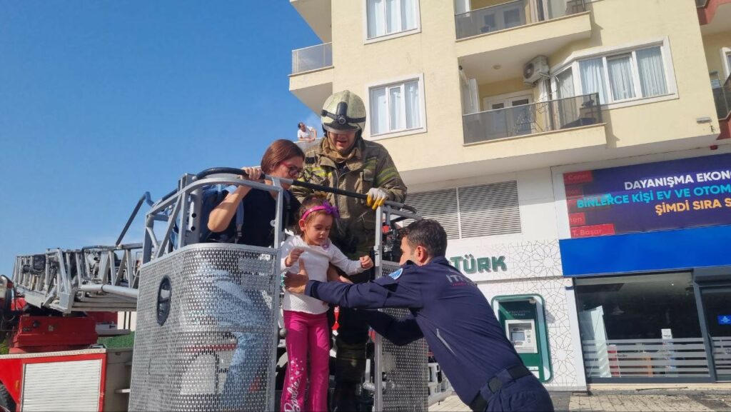 Ekipler hızla yangına müdahale ederken, binanın 4. Katında oturan 5 kişilik bir aile koridoru saran dumanlar nedeniyle balkona sığındı. Aileyi fark eden ekipler, itfaiye sepetiyle aralarında çocuklarında bulunduğu aile bir bir aşağı indirerek tahliye etmeye başladı.