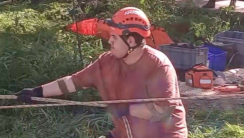 Bursa’da gerçekleştirilen tatbikatta ekipler, senaryo gereği dere yatağındaki yaralıları halatlarla kurtardı.