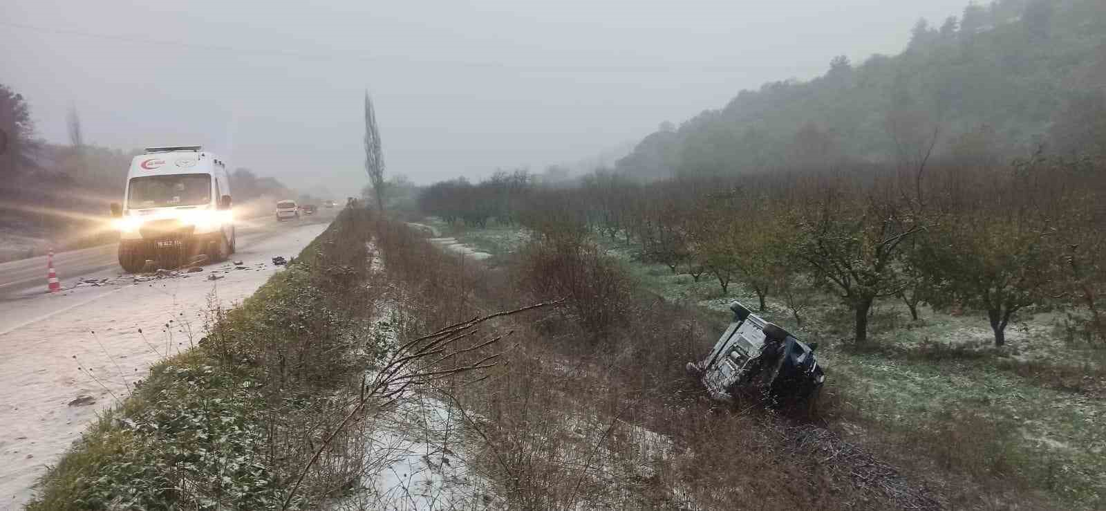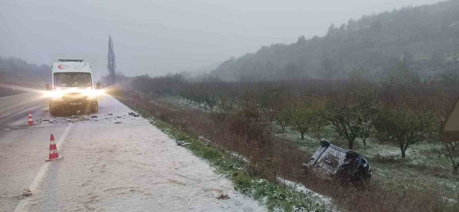 Bursa’da yağış sebebiyle kayganlaşan yolda direksiyon hakimiyetini kaybeden sürücü, karşı istikametten gelen başka bir araca çarptı. Kazada 3 kişi yaralandı.