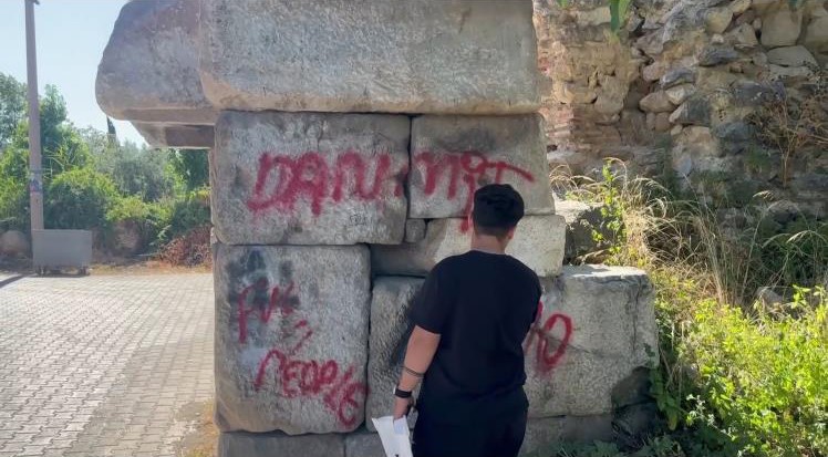 Bursa’nın İznik ilçesinde 2 bin yıllık tarihi surlara sprey boya ile yazılan yazılar tepki çekiyor.