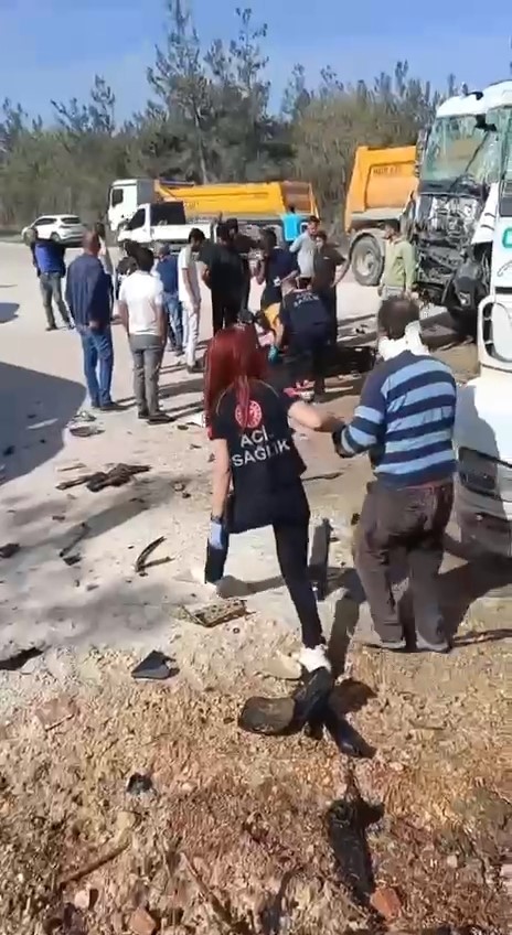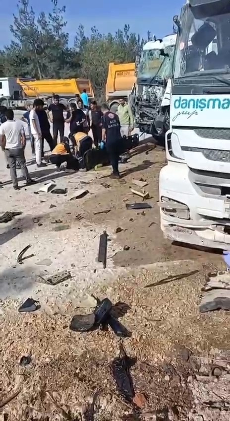 Bursa’da seyir halinde olan 2 hafriyat kamyonu kafa kafaya çarpıştı. Kazada, 1’i ağır 2 kişi yaralandı.