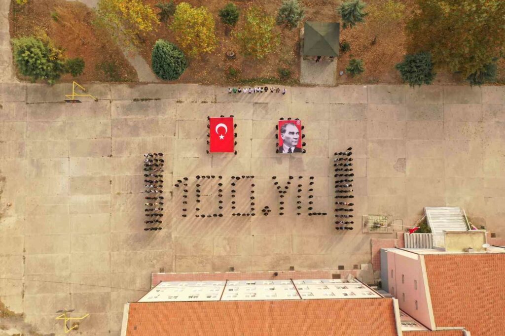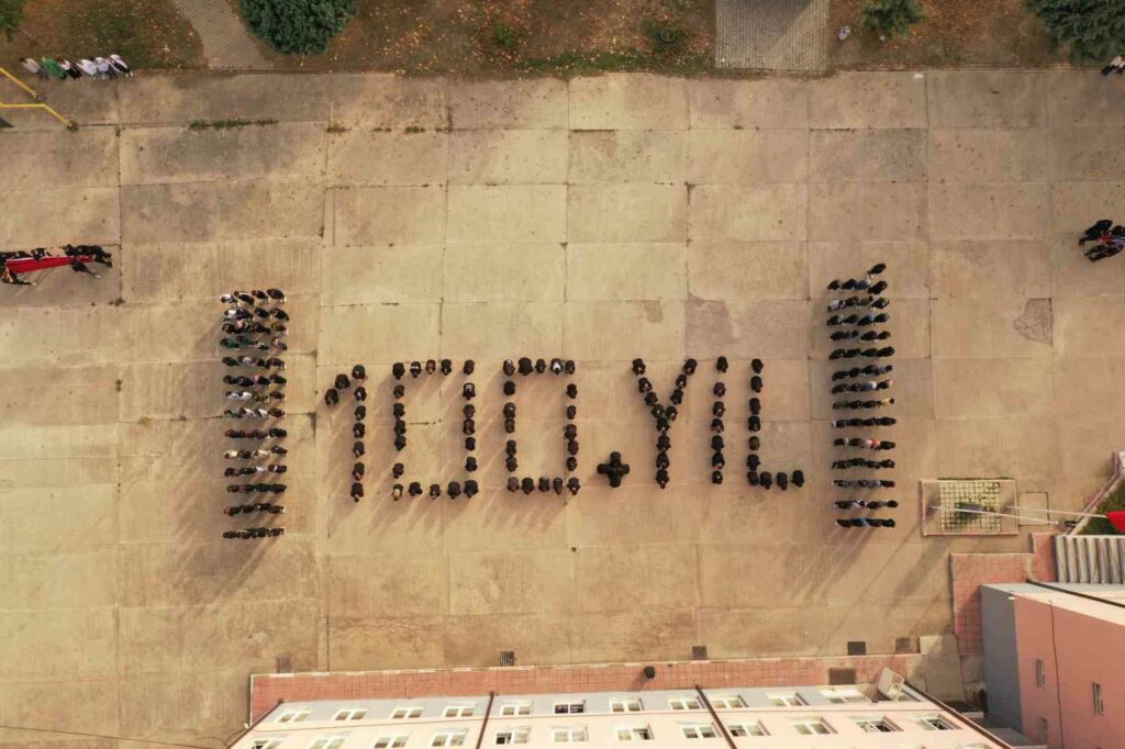 Bursa’nın Orhaneli ilçesindeki Türkan Sait Yılmaz Anadolu Lisesi öğrencileri koreografi çalışması gerçekleştirdi. 230’a yakın öğrenci ve öğretmenleri ile birlikte okul bahçesinde 100. Yıl koreografisi yaptı. Öğrenciler Türk bayrağı ve Atatürk posteri açarak gösterilerinin tamamlarken, o anlar dron ile de görüntülendi.