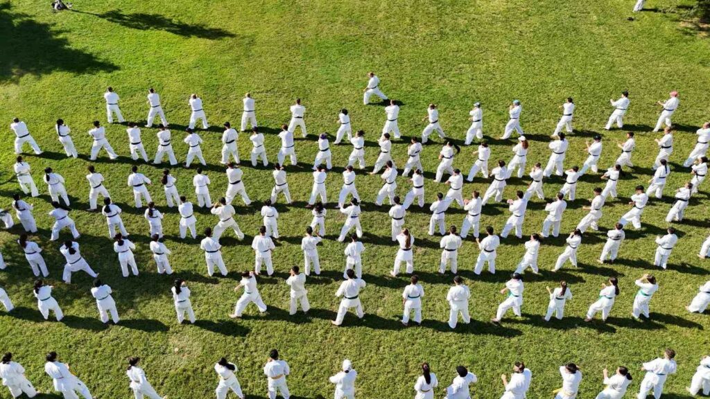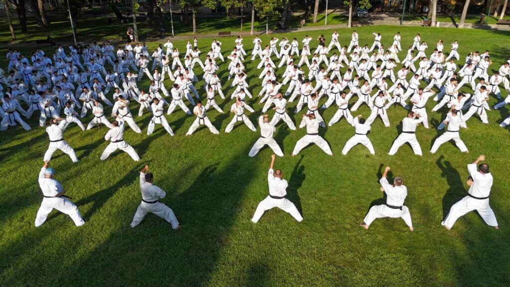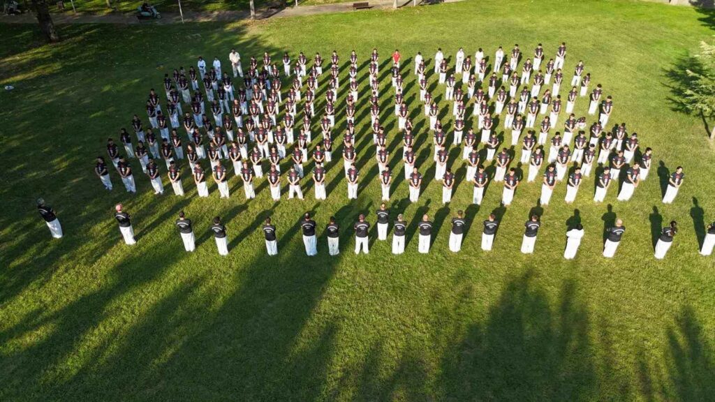 Bursa’da 240 shinkyokusin sporcusu aynı anda senkronize bir şekilde antrenman yaptı. Drone ile havadan görüntülenen antrenman görsel şölen oluşturdu.