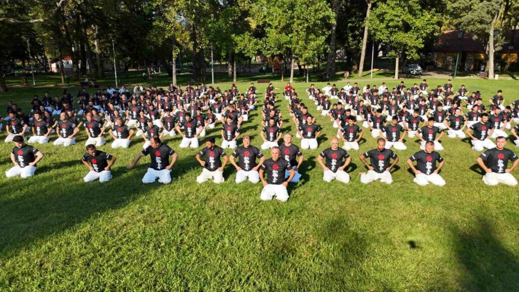 Bursa’da 3’üncüsü düzenlenen Uluslararası Shinkyokusin Karate Yaz Kampı’na Türkiye’nin çeşitli illerinden 240 sporcu katıldı. 27-29 Eylül tarihleri arasında Reşat Oyal Kültür Parkı’nda antrenman yapan sporcular dünyaca ünlü shihan Muzaffer Bacak’tan ders aldı. 240 sporcunun senkronize bir şekilde antrenman yaptığı anlar havadan drone ile görüntülendi.