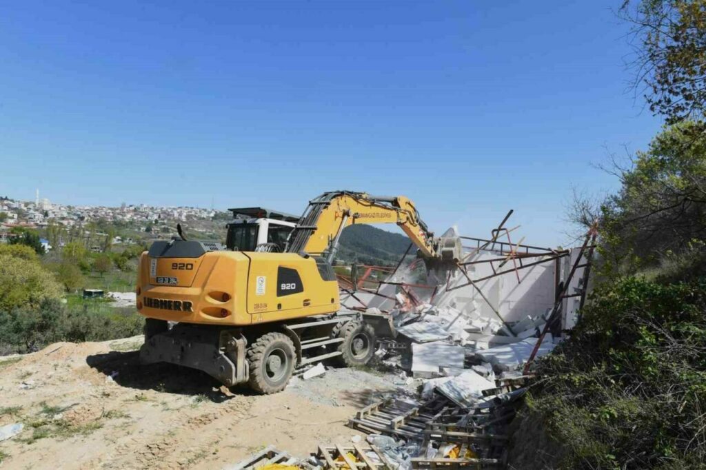 Bursa’da imara aykırı şekilde inşa edildiği belirlenen bina, inşaat temeli ve çevre duvarı olmak üzere 25 kaçak yapı yıkıldı.