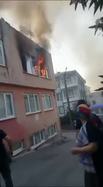 Bursa’da 3 katlı binanın son katı alev alev yandı. O anlar saniye saniye amatör kameraya yansıdı.
