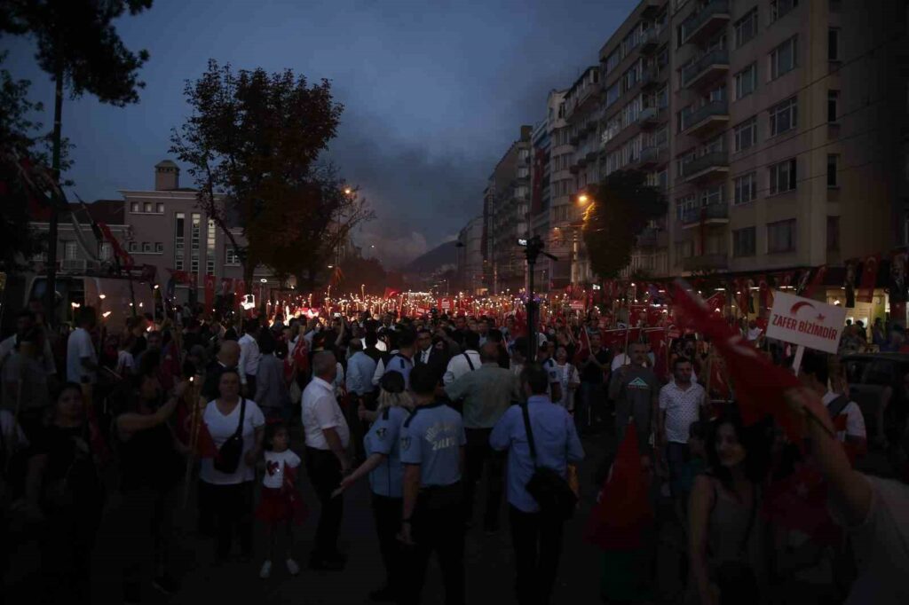 Bursa’da binlerce kişi 30 Ağustos Zaferi’nin yıldönümünde fener alayında buluştu, Nilüfer konseri ile coştu. Bursa Büyükşehir Belediye Başkanı Mustafa Bozbey, Tarihi Belediye binasından Atatürk Stadyumu Meydanı’na kadar ellerinde meşale ve Türk Bayrağı taşıyan binlerce Bursalı ile yürürken, Atatürk Stadyumu Meydanı’na da şampiyonluğun hatırası için tribün müjdesi verdi. Başkan Bozbey, “Bu topraklarda hür ve tam bağımsız olarak yaşamamızı 30 Ağustos Zaferi’ne borçlu olduğumuzu bilmek vatandaşlık sorumluluğudur. Bağımsızlık bir milletin en yüce değeridir” dedi.