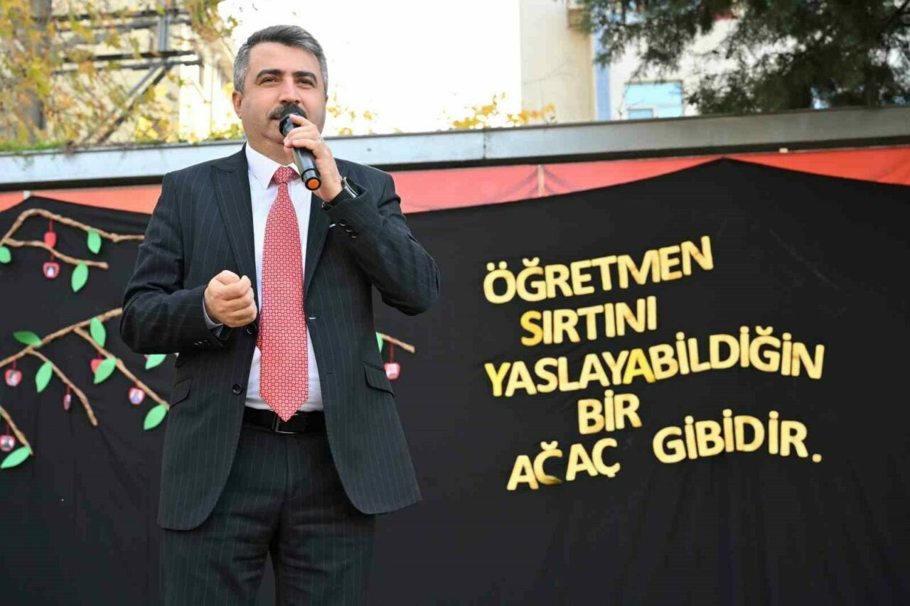 Hizmet ve gelecek vizyonlarının merkezine her daim insanı kattıklarını belirten Başkan Yılmaz, “Siz bir gönül inşa ederseniz bir dünyayı inşa etmiş olursunuz. Bir gönlü fethederseniz bütün dünyayı fethetmiş olursunuz. Öğretmenlerimiz sadece gönülleri fethetmekle kalmıyor aynı zamanda insanı da inşa ediyor. Bizler her zaman öğretmenlerimize insan yetiştiren, malzemesi insan olan bir usta, bir gönül mimarı nazarıyla bakıyoruz. Öğretmenlerimizi millet inşa eden gönül mimarları olarak her zaman başımızın üstünde tutmaya devam edeceğiz. Bu anlamlı gün vesilesiyle tüm öğretmenlerin öğretmenler gününü kutluyor, görevi başında şehit olanlar ile dar-ül bekaya uğurladığımız eğitim camiamızın güzide neferlerini rahmetle yâd ediyorum. Bölücü terör örgütünün ömürlerinin baharında iken bizden kopardığı Şenay Aybüke Yalçın’a, Necmettin Yılmaz’a ve daha nice kahraman eğitimcilerimize Allah’tan rahmet diliyorum. Kıymetli müdürümüz Kadir Taşçı’ya da hayırlı, uzun ömür diliyorum” dedi.