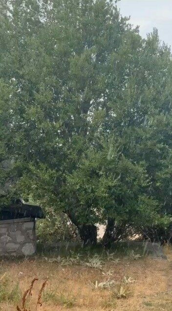Bursa’da aşırı sıcaklıklardan bunalan vatandaşlar, 5 dakika etkili olan yağmurla serinledi.