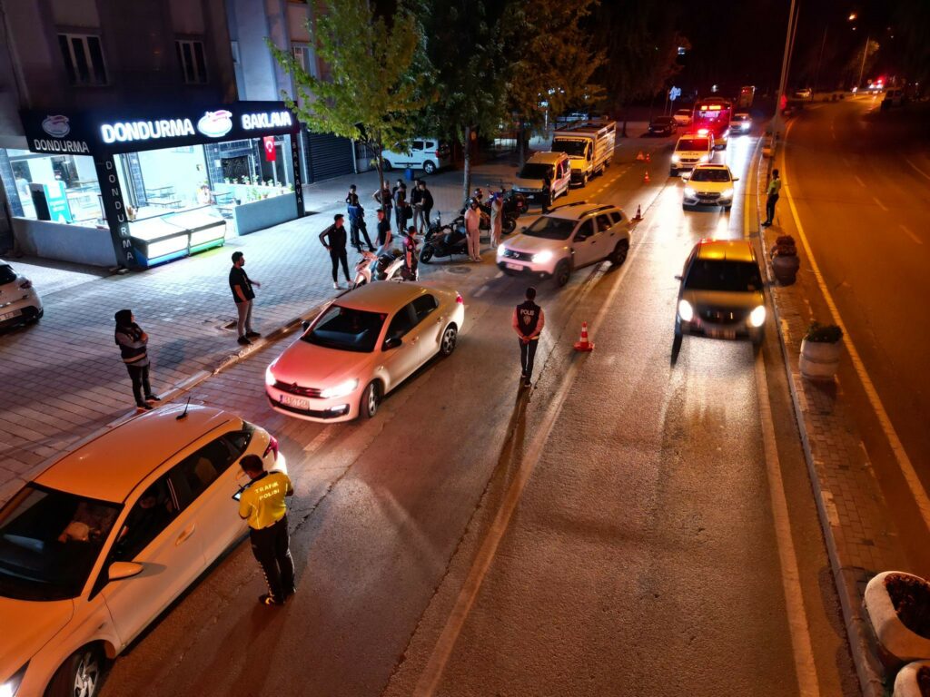 Ana caddelerde gerçekleştirilen trafik uygulamasında durdurulan araçlar ekiplerce titizlikle arandı.