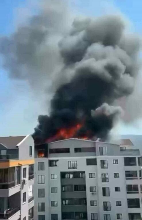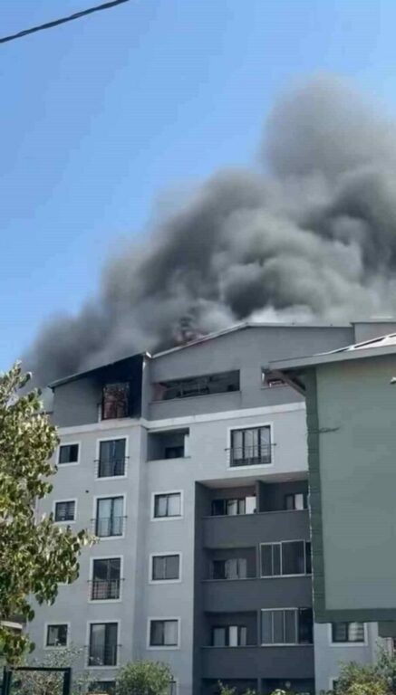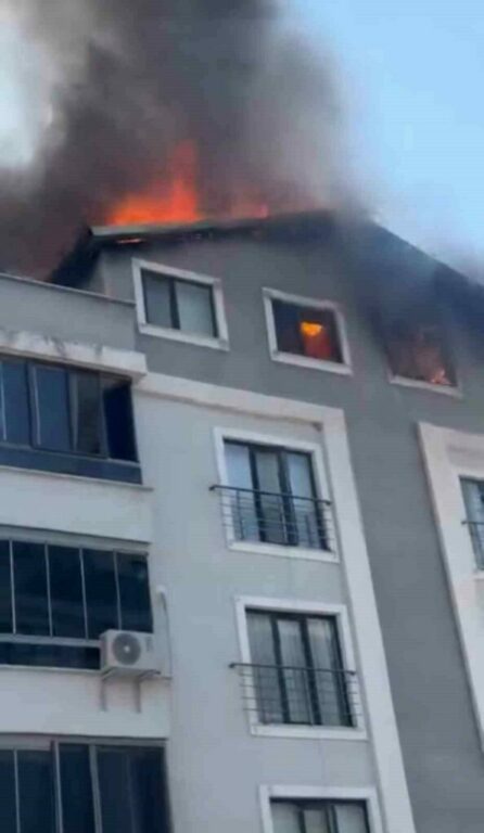 Bursa’da 6 katlı bir apartmanın en üst katında yangın çıktı. Alevler kısa sürede büyüyerek binayı sardı.