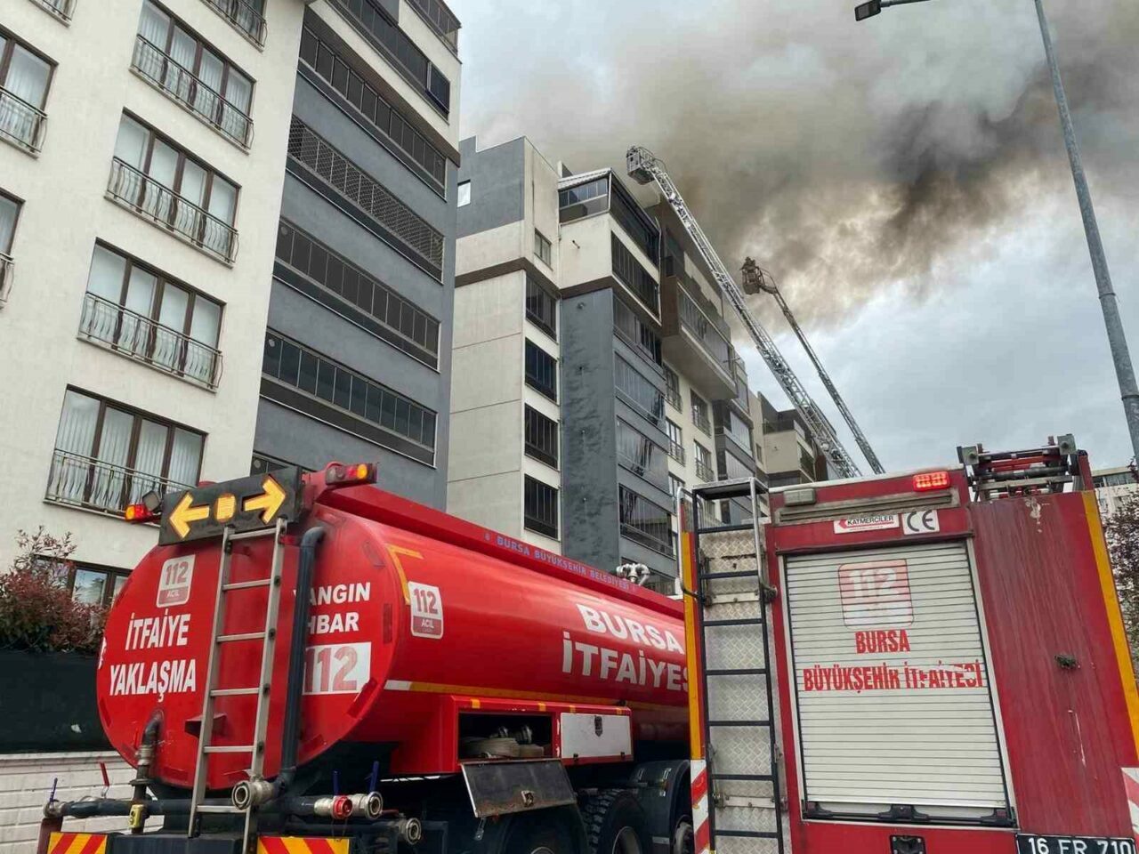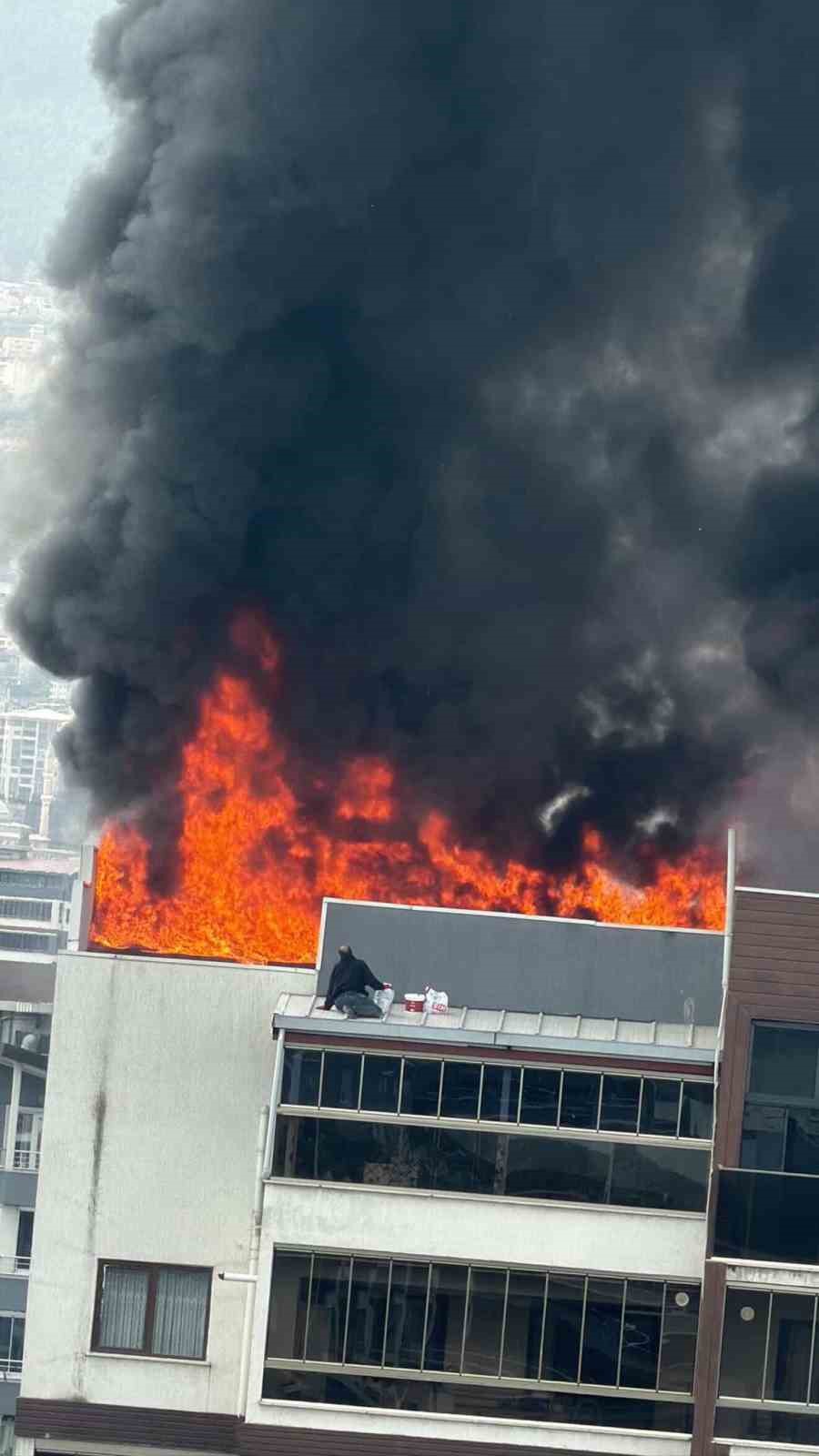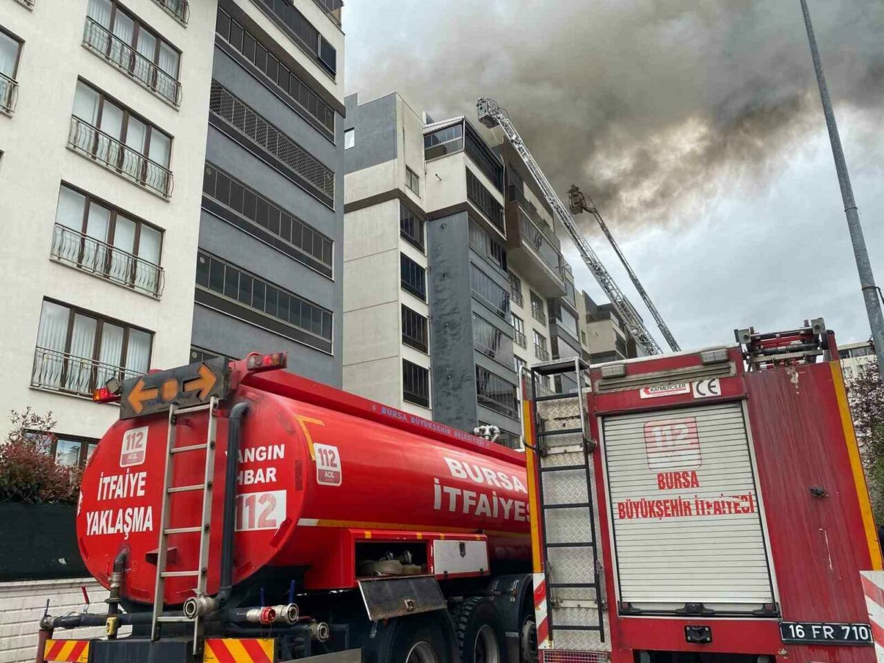 Yangında mahsur kalan bir çatı ustası ile dumandan etkilenen başka bir çalışan için zamanla yarış başladı. Kendini dışarıya atan kişi çatının ucunda kurtarılmayı bekledi. Bursa Büyükşehir Belediyesi’nin 40 metre merdivenli aracı mahsur kalan kişiyi kurtardı. Dumandan da etkilenen başka bir kişiye de 112 ekibi müdahale etti.