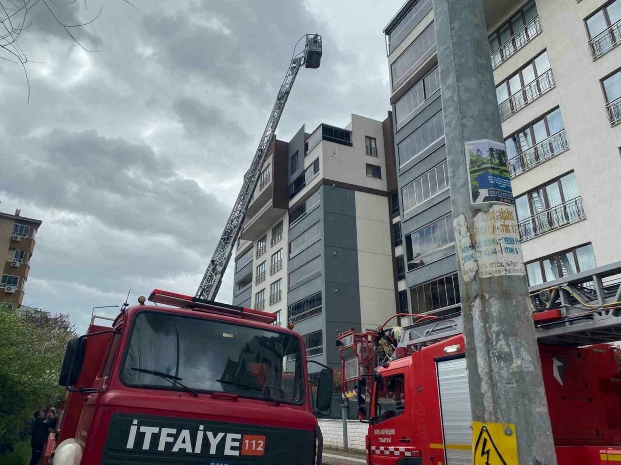 Bursa’nın merkez Yıldırım ilçesinde 8 katlı sitenin çatı katında çıkan yangın korku dolu anlar yaşattı. Yangında mahsur kalan ve dumandan etkilenen 2 çatı ustası itfaiye ekiplerince kurtarıldı. Yangın bir saatlik çalışmayla söndürüldü. O anlar kameraya yansıdı.