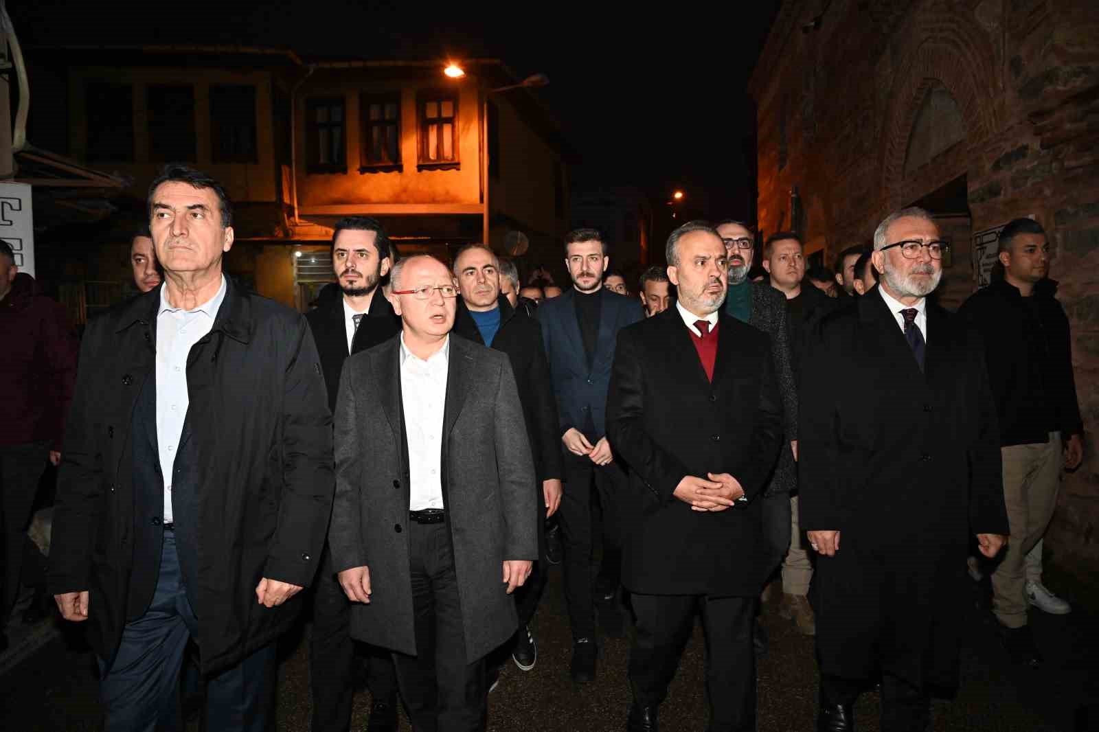 Bursa Büyükşehir Belediyesi tarafından Mevlana Celaleddin-i Rumi’nin 750’inci vuslat yıldönümü münasebetiyle hazırlanan ‘Şeb-i Arus töreni, Üftade Tekkesi ve Camii önünden Mevlevi Alayı yürüyüşü ile başladı. Programa, Bursa Büyükşehir Belediye Başkanı Alinur Aktaş’ın yanı sıra Vali Vekili Hamdi Bolat, AK Parti Grup Başkanvekili ve Manisa Milletvekili Bahadır Yenişehirlioğlu, AK Parti İl Başkanı Davut Gürkan, ilçe belediye başkanları ve tasavvufa gönül veren çok sayıda vatandaş katıldı.
