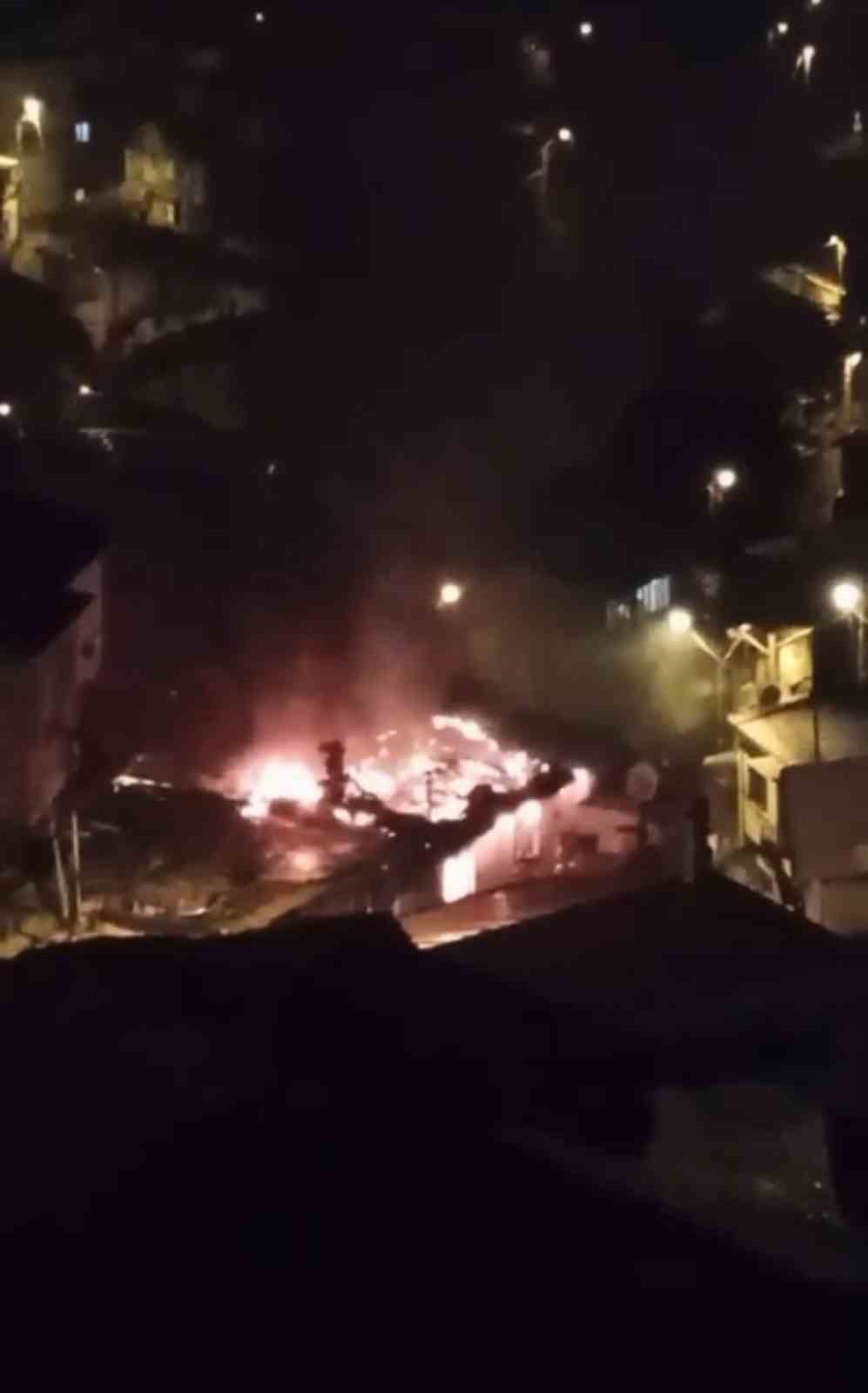 Evin alev alev yanması çevrede bulunan vatandaşların cep telefonu kamerasına yansıdı.