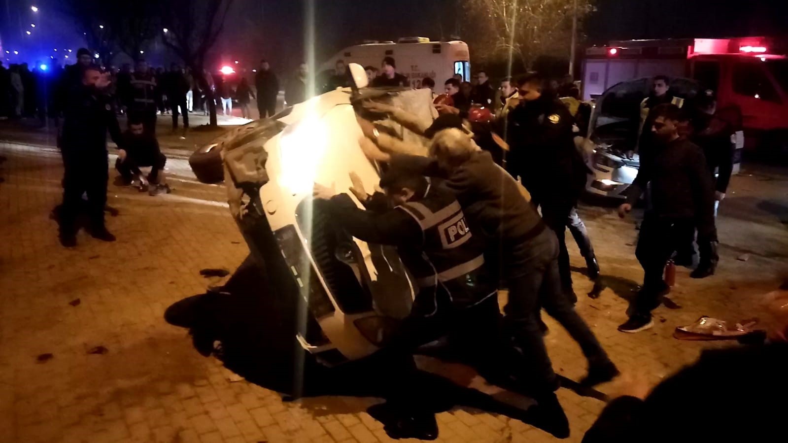 Bursa’nın İnegöl ilçesinde bir polis aracı, bir otomobil ile elektrikli bisikletin karıştığı zincirleme kazada 2’si polis 4 kişi yaralandı.