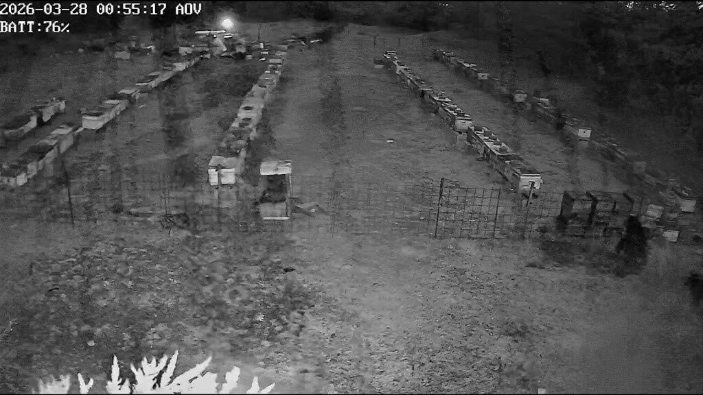 Uludağ eteklerindeki bir köye yakın arı çiftliğine gece saatlerinde giren ayı ailesi, arıcıların kabusu oldu. Anne ayı ve iki yavrusunun kovanlara ulaşmaya çalıştığı anlar güvenlik kameralarına yansıdı.