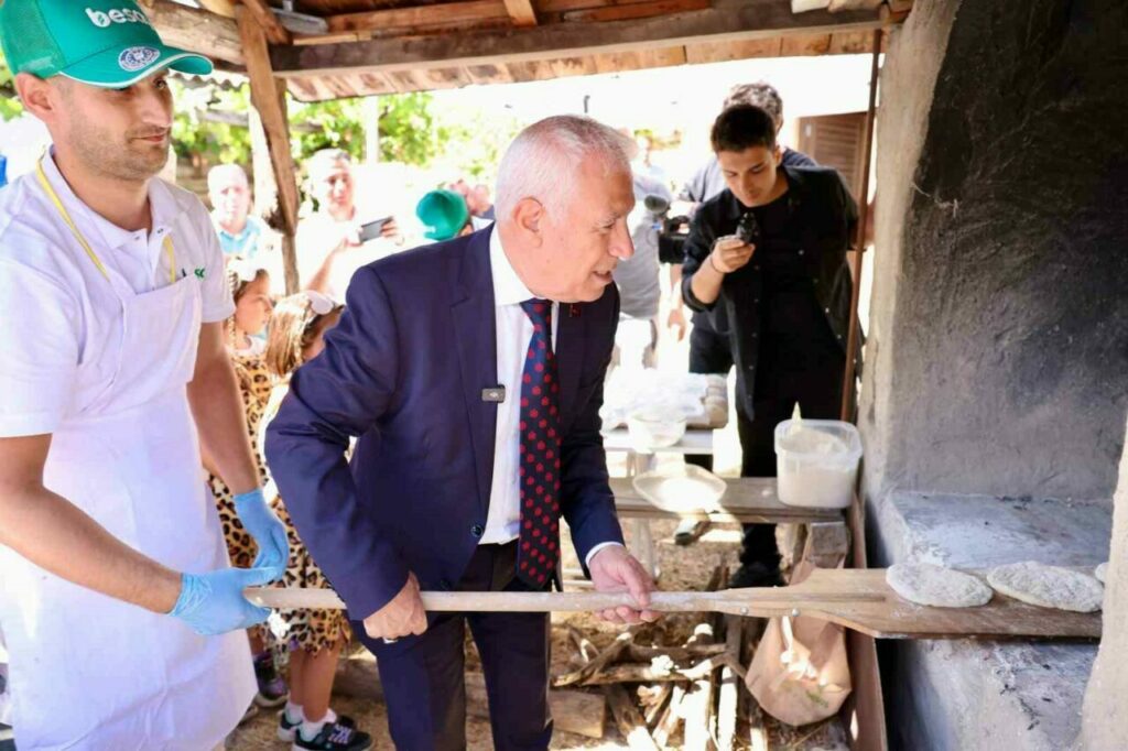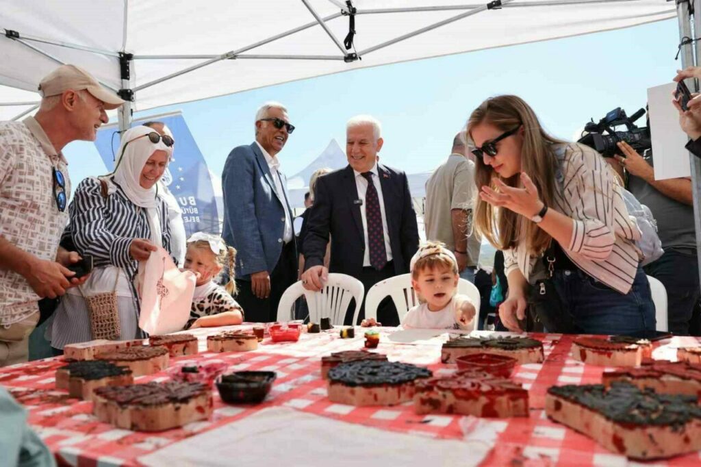 Arkeoloji Festivali’ni ziyaret eden Büyükşehir Belediye Başkanı Mustafa Bozbey, stantları gezerek tarih meraklılarıyla bir araya geldi. Festival kapsamında hazırlanan kilden çömlek, fosil kolye, yontma taştan alet yapımı, kilden takı, deri bileklik tasarımı, neolitik ve kalkolitik ev tasarımı, tarih öncesi el matkabı deneyimleme, deri dövme, tarih öncesi seramik restorasyonu, çarkta çömlek yapımı, Hitit çivi yazısı, tarih öncesi müzik aleti, at arabası tasarımı ve antik yemek yapımı atölyelerini ziyaret eden Başkan Bozbey, çocukların yaptığı çalışmalara eşlik etti. Buğday öğütme ve ekmek yapımı atölyesinde çocukların hazırladığı ekmeği de fırına veren Başkan Bozbey, sikke basımı atölyesinde ise çekici eline alarak para bastı. Festivale katılan kadın kooperatiflerinin stantlarını da gezen Başkan Bozbey, Bursa’nın yöresel lezzetlerinin tadına baktı.