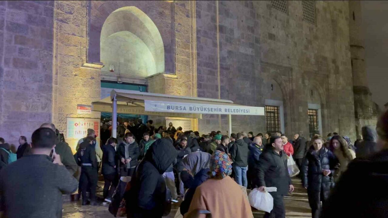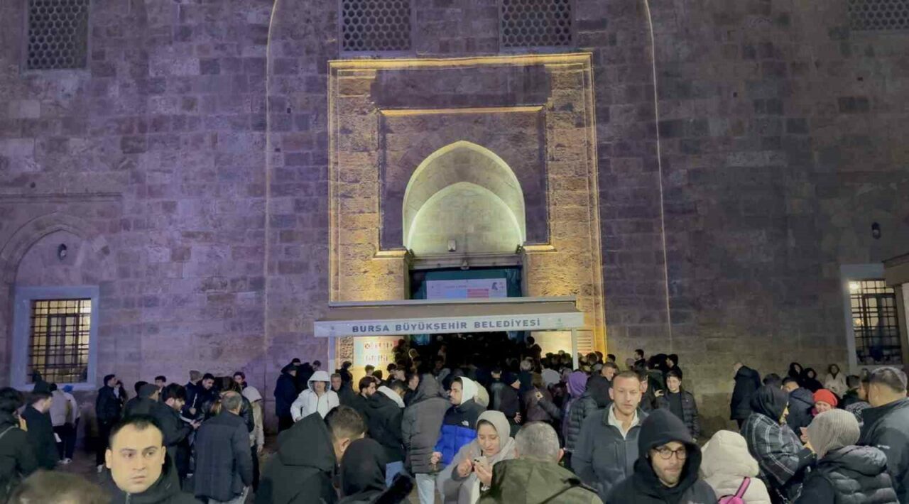 Bursa’da Ramazan-ı Şerif’in habercisi Berat Kandili, Ulu Cami’de yoğun katılımla idrak edildi. Yağmurlu havaya rağmen vatandaşlar Ulu Cami’ye akın ederken, cami ve avlusu dolup taştı.