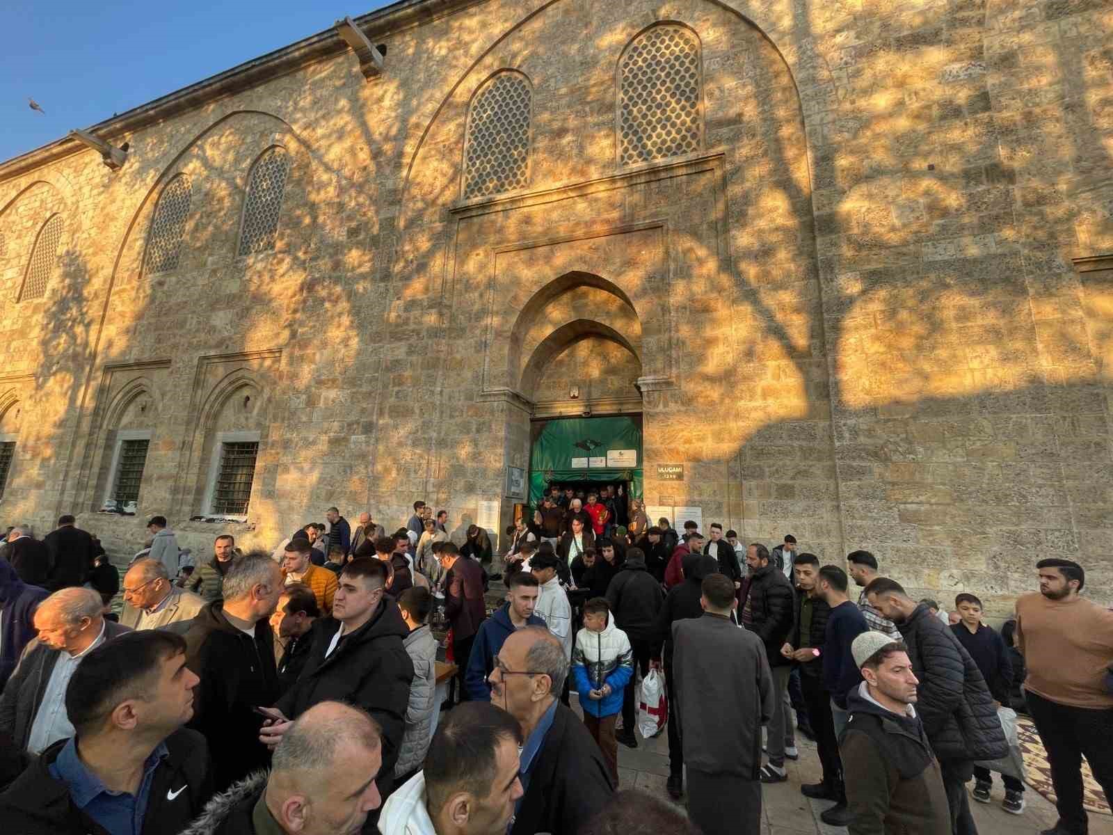 Camii içerisinde yer bulabilmek için saatler öncesinden Ulu Cami’ye gelen vatandaşlar, avluyu ve çevresini tamamen doldurdu.