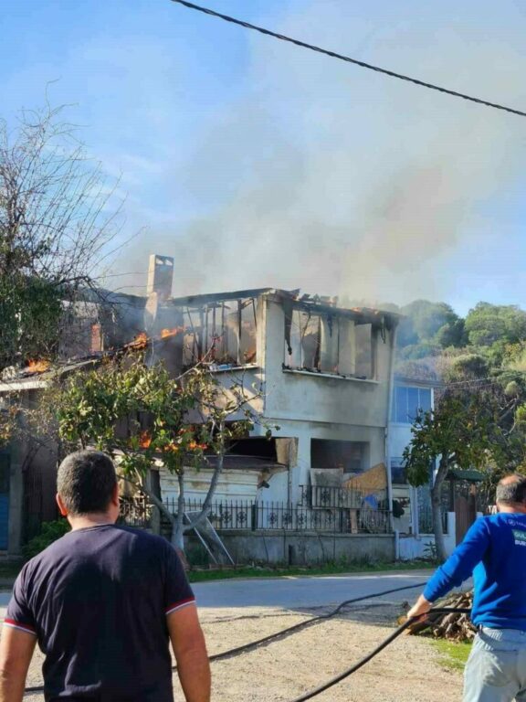 Bursa’nın Mudanya ilçesinde çıkan yangında bir ev küle dönerken, yanındaki bina da alevler ve söndürme esnasındaki su nedeniyle hasar gördü. Yangın, Mudanya ilçesi Eğerce Mahallesi 14. Sokak’ta meydana geldi. Edinilen bilgiye göre, ev sahibi Fatma Edemen (64) mutfakta temizlik yaptığı sırada evde yangın çıktı. Komşular, binadan yoğun duman çıktığını fark edince hemen Edemen’e seslenerek, aşağı […]