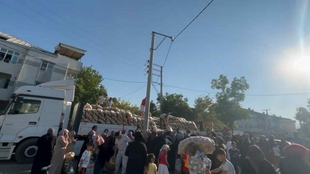 Bursa’nın İnegöl ilçesinde bir hayırsever, ihtiyaç sahiplerine destek olmak amacıyla 1 tır dolusu patatesi ücretsiz dağıttı.