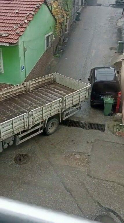 Bursa’da sokak arasında dönüş yapamayan kamyon sürücüsü manevra yaparken, park halindeki hafif ticari araca ağır zarar verdi. kamyon sürücüsünün çarptığı ve sonrasında kaçtığı o anlar kameraya yansıdı.