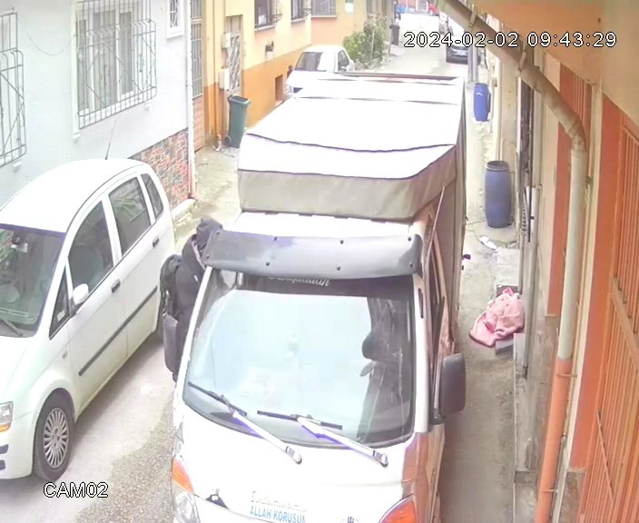 Bursa’da bir kişi yük indiren kamyonetten telefon çaldı. O anlar güvenlik kameralarına yansıdı.