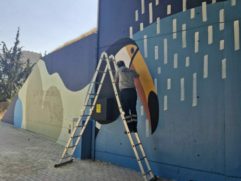 Trafo binaları, istinat duvarları ve köprülü kavşakları tuval gibi kullanan Büyükşehir Belediyesi ekipleri, cadde ve sokakları sanatla buluşturuyor. Dayanıklı özel boyalar kullanan ekipler, Kültürpark’ın kuzey duvarları ile Demirtaşpaşa Kavşağı’nın ardından Azerbaycan Parkı, Balat Otoyol Köprülü Kavşağı, Soğanlı Mahallesi Nilüfer Caddesi ve Yahşibey Mahallesi’nde çeşitli alanları da özenle renklendirdi.
