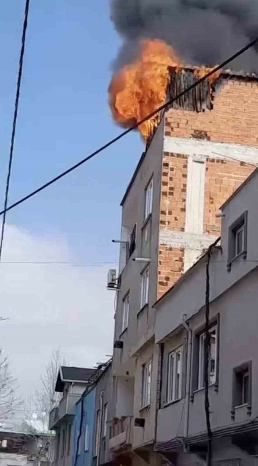 BURSA’DA BİR EVİN ÇATI KATINDA ÇIKAN YANGIN İTFAİYE EKİPLERİNİN MÜDAHALESİYLE SÖNDÜRÜL