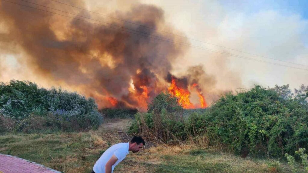 Ççiftlikteki yangını söndürme çalışmaları devam ederken, alevler yaklaşık 200 metre mesafede bulunan Millet Bahçesi’ne sirayet etti. Bahçenin arka cephesinde çıkan yangın, rüzgarın da etkisiyle Millet Bahçesi’nin karşısında bulunan alana da sıçradı.
