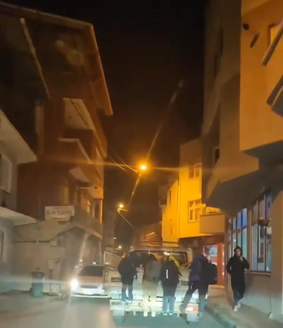 Bursa’nın Osmangazi ilçesi Merinos Mahallesi üzerinde açık kasa bir kamyoneti gören çocuklar, aracın kasasına tutundu. Dakikalarca bu şekilde ilerleyen çocuklar kameraya yansırken, kamyonet sürücüsünün durmaması dikkat çekti. Çocukların tehlikeli yolculuğunda şans eseri korkulan yaşanmadı.