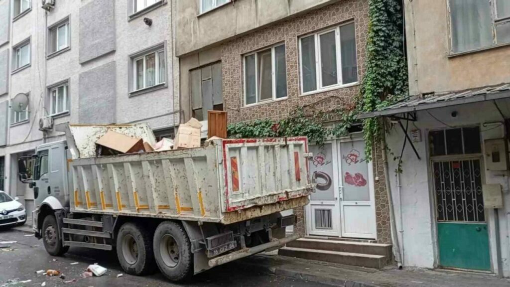 Kadının temizlik sırasında evde olmadığı öğrenilirken, ekipler dairelerden yaklaşık 1,5 kamyon dolusu çöp çıkardı. Kullanılamaz durumdaki eşyalar camlardan doğrudan çöp kamyonuna atıldı.