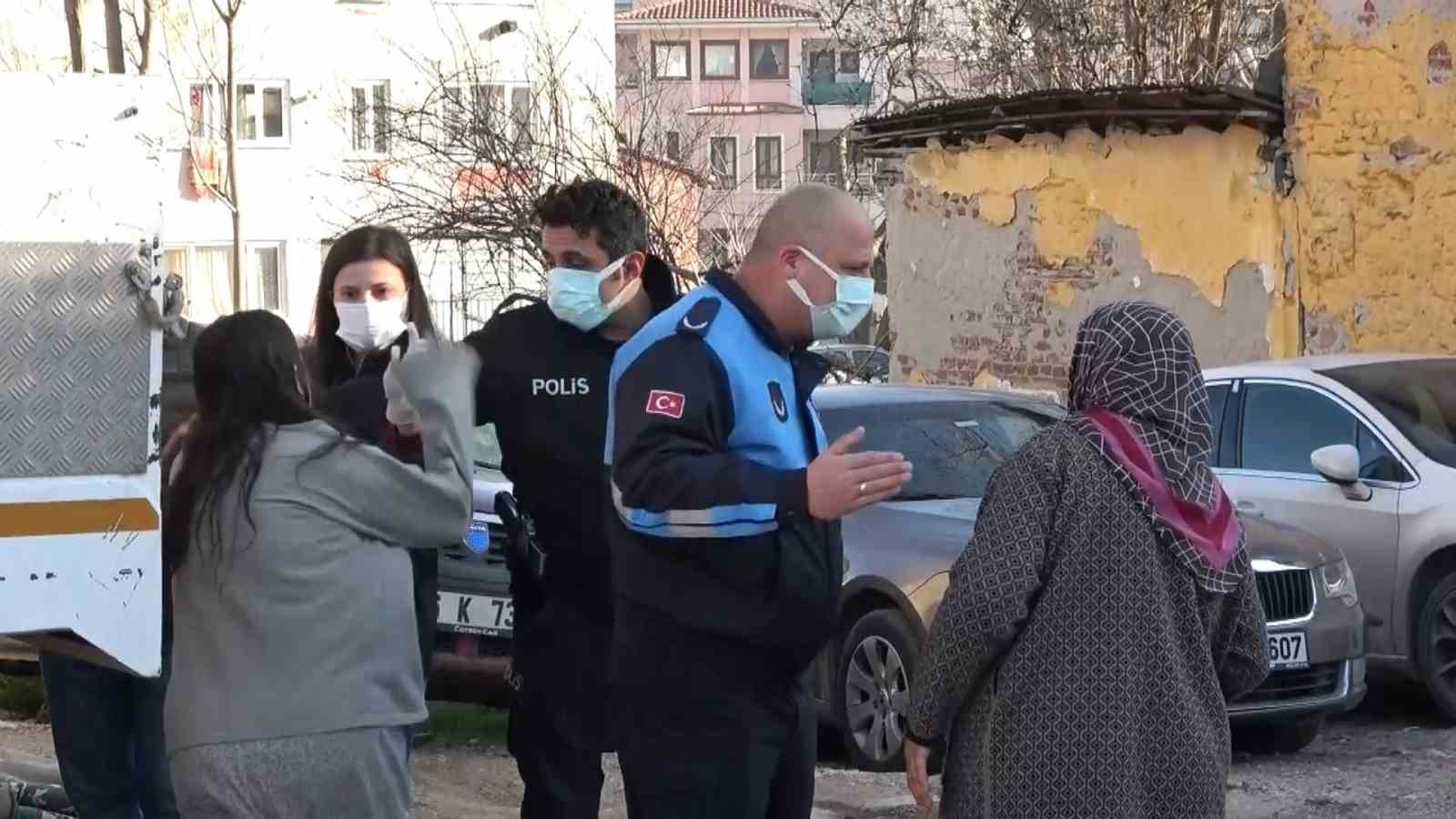 Kapının önüne yanaşan kamyona camdan topladıkları çöpleri atan ekiplere bağırarak sitem eden ev sahibi M. A., kamyon kasasındaki eşyalarını görünce çığlık attı. Engelli kızına çeyiz için o eşyaları aldığını öne süren M. A. “Kızımın çeyizlerini atıyorsunuz, atmayın. Örgü iplerimi de atmışlar” diye bağırdı.