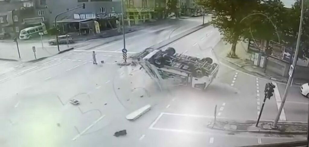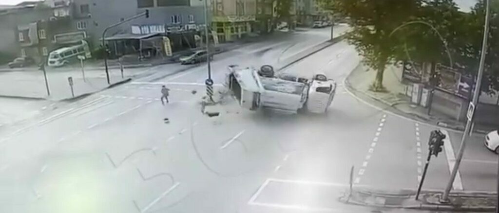 Bursa’nın Yıldırım ilçesinde sabah saatlerinde seyir halindeki çöp kamyonu kontrolden çıkarak refüje girdi. Çarpmanın etkisiyle takla atan kamyon ters dönerken, ortalık savaş alanına döndü. Kaldırımda bekleyen bir vatandaş ise kazayı kıl payı atlattı. Kazayı gören vatandaşlar sürücünün yardımına koşarken, o anlar güvenlik kamerasına saniye saniye yansıdı. Olay, Yıldırım ilçesi Yavuzselim Mahallesi’nde meydana geldi. Edinilen bilgiye […]
