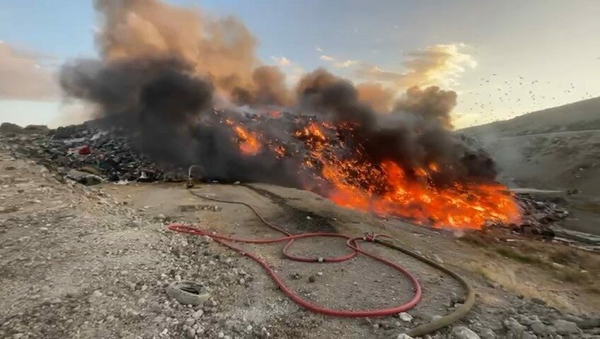Bursa’da Hamitler Katı Atık Tesisi’nde çıkan yangın, şehrin pek çok noktasından görüldü.